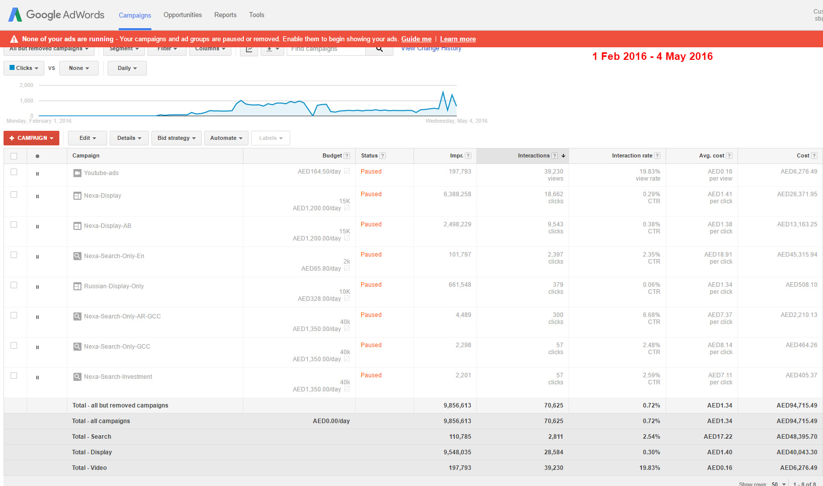 Gulf Sotheby’s AdWords campaign report in 20 days shows far better results when we compare to the previous digital agency’s results above.