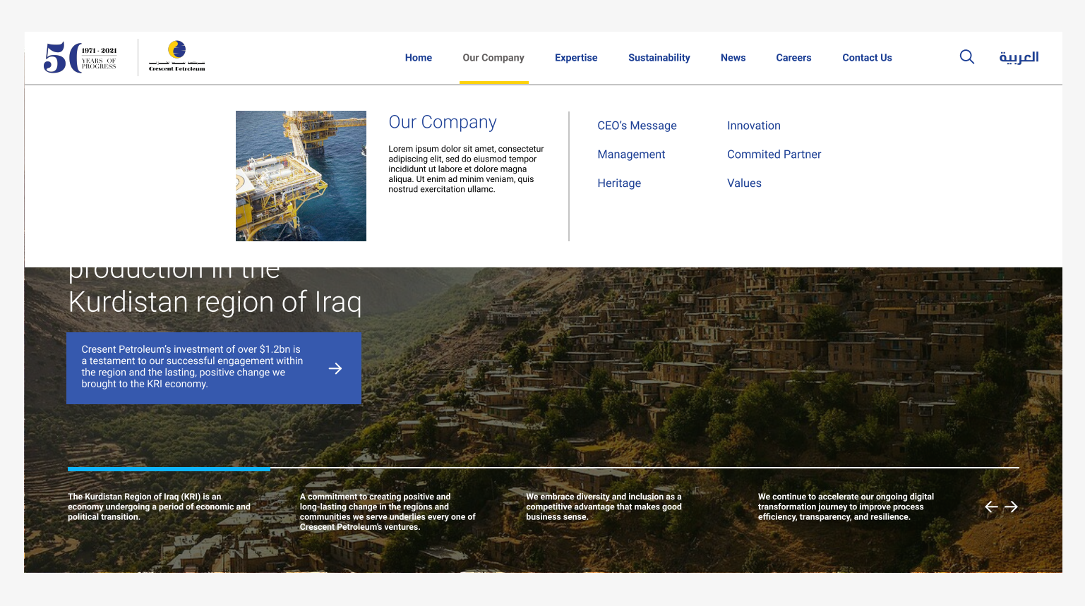 Crescent Petroleum is the first and largest private upstream oil and gas company in the Middle East. Founded in 1971, Crescent Petroleum is headquartered in the Emirate of Sharjah, United Arab Emirates, with current operations in both the UAE and the Kurdistan Region of Iraq.