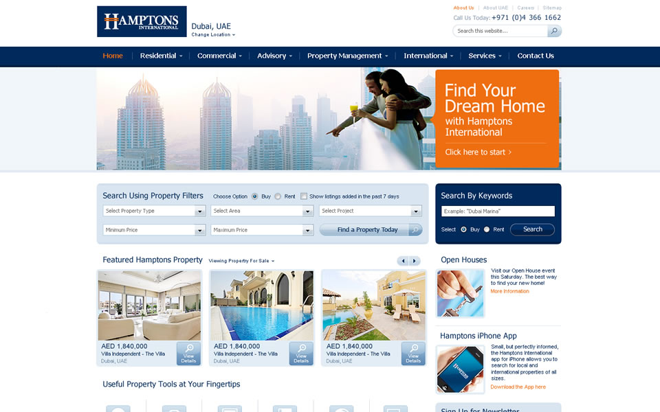 Hamptons International is a premier international real estate company in Dubai offering an extensive portfolio of properties in the UAE and internationally. With more than 150 years of experience, they offer unrivalled expertise and services in Residential/Commercial Sales and Leasing, Property Management, Valuations & Research, and Management of new off-plan project launches.