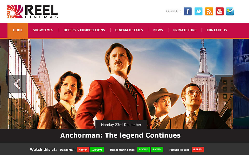 REEL Cinemas is the largest cinema chain in the United Arab Emirates with multiplexes in Dubai Mall, Mall of the Emirates and Dubai Marina Mall.